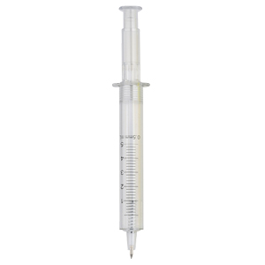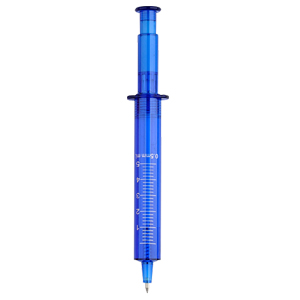 Bolígrafo plástico promocional “Jeringa”. Escritura Azul.