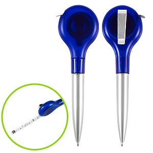 Bolígrafo Plástico con Huincha de Medir de 1 mt. Escritura Azul.