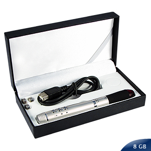 Presentador Datashow / Powerpoint con Puntero Láser y Pen Drive USB de 8GB de capacidad. Funciones de avance y retroceso por vía infrarroja. Presentación en elegante estuche de regalo color negro.