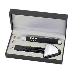 Presentador Datashow / Powerpoint con Puntero Láser y Conexión USB. Funciones de avance y retroceso. Presentación en elegante estuche de regalo de color negro