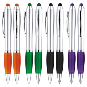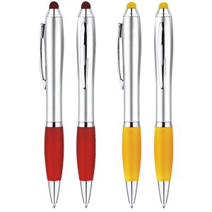 Bolígrafo “Wind Satin Touch-Screen” con goma posterior de color para pantalla táctil. Escritura azul.