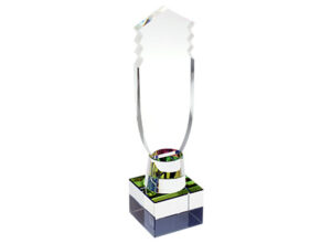 Deluxe Trofeo grande de Cristal modelo “Win”. Base Cristal Tornasol. Presentación en caja de cartón forrado negro.